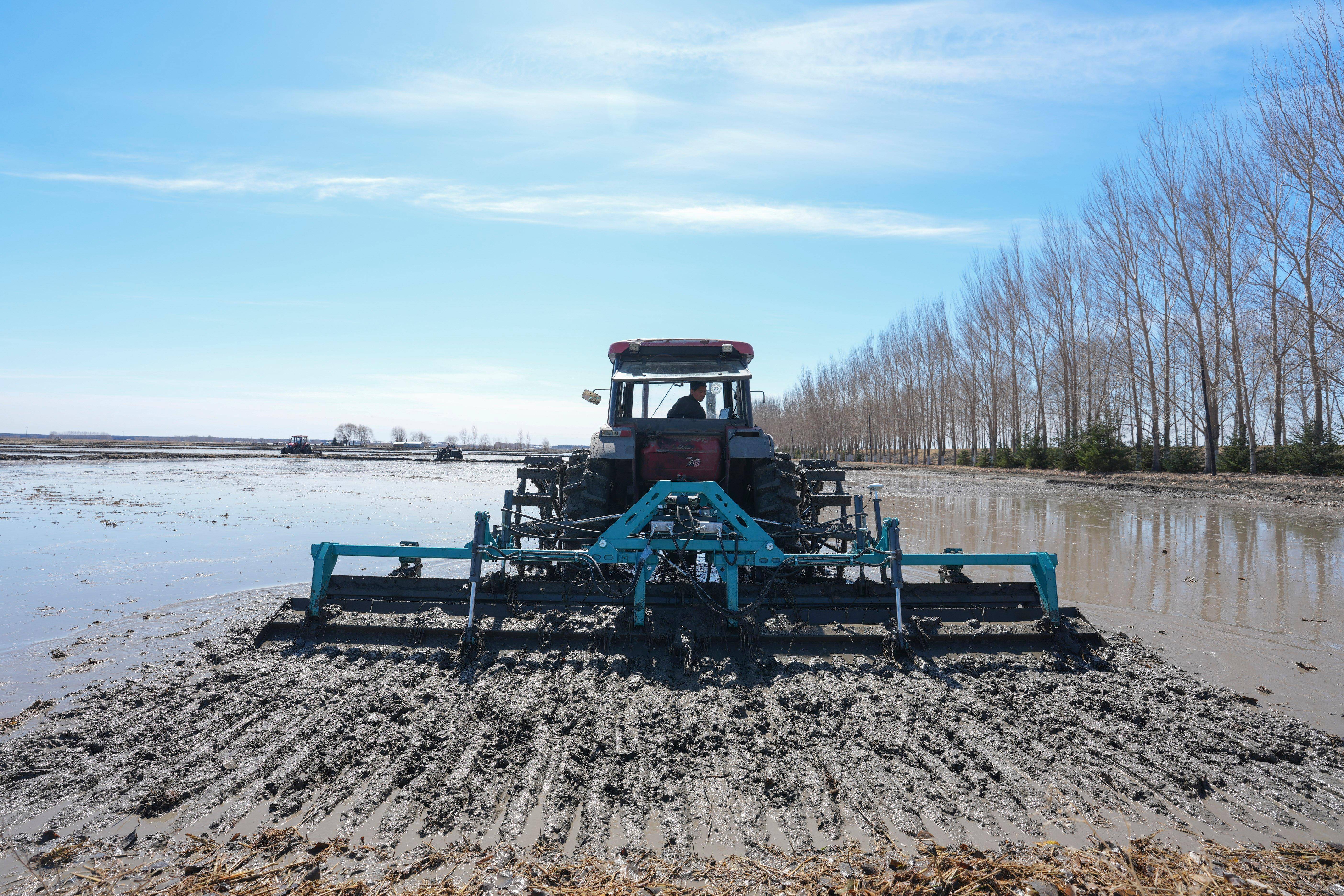 天气渐暖,国家粮食主产区黑龙江垦区各地陆续进入水稻春耕作业期,田间地头呈现出一片繁忙景象。