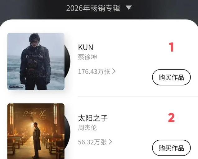 2026年年初以来,数字音乐市场保持着稳定的竞争格局。蔡徐坤的新作从二月推出后,销量稳步上升,没有出现大幅波动。周杰伦这边则处于预售阶段,排名虽然靠前,但拉开的距离还不够明显。知名度高的艺人通常能带动更大热度,这次的情况却让部分听众产生了疑问。为什么庞大的粉丝基础没有直接转化成更突出的销售数据,这个问题在网络上反复出现。