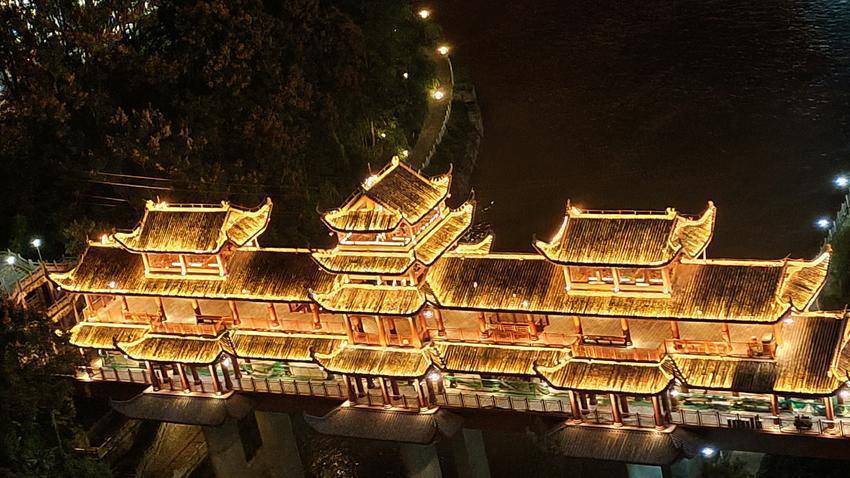 灯火阑珊处,悠悠溇水串联起两岸的繁华与宁静。横跨水面的几座大桥,在不同方位闪烁着璀璨灯火,像是镶嵌在丝带上的宝石,散发着迷人的光芒。