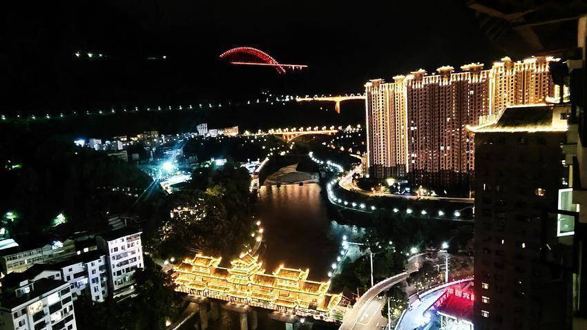 容美城区的灯光,错落有致;那一颗颗闪烁的星辰,为夜色增添了无穷的神秘与梦幻。置身容美之夜,一揽人间星河。