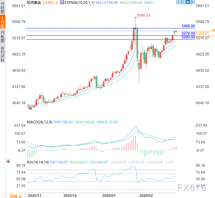 (现货黄金日线图,来源:易汇通)北京时间11:50,现货黄金现报5362.60美元/盎司。